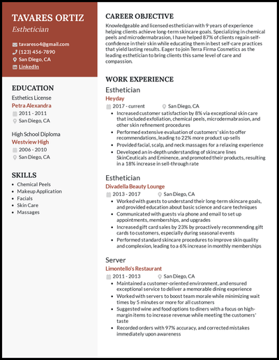 Then youll be on your way to. Ad Use the Best Resumes of 2021 to Create a Resume in 2021 and Land Your Dream Job. Ortiz Esthetician Personal Info 3471 Camden Place Poughkeepsie NY 12601.